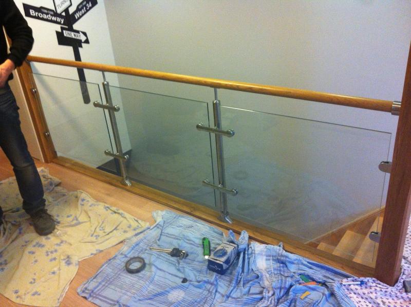 Garde corps verre, inox et main courante en bois.